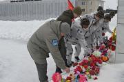 Конечная точка маршрута – Рикасиха. Несмотря на штурмовое предупреждение и сильнейший встречный ветер, группа дошла до этой деревни, как и планировалось, на лыжах. Там в честь их марш-броска был организован митинг. Вместе с участниками военно-патриотического клуба из Архангельска они возложили цветы, пообщались со школьниками и отдали дань памяти землякам.