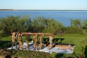 ...Добравшись до Пустозерска, мы вышли на уже обжитый берег: в день нашего заезда первая смена волонтёров отправлялась домой, и мы унаследовали от них палатки и другую походную инфраструктуру. Пока мы обустраивались, на обед пришли археологи – сотрудники научно-производственного объединения «Северная археология-1».